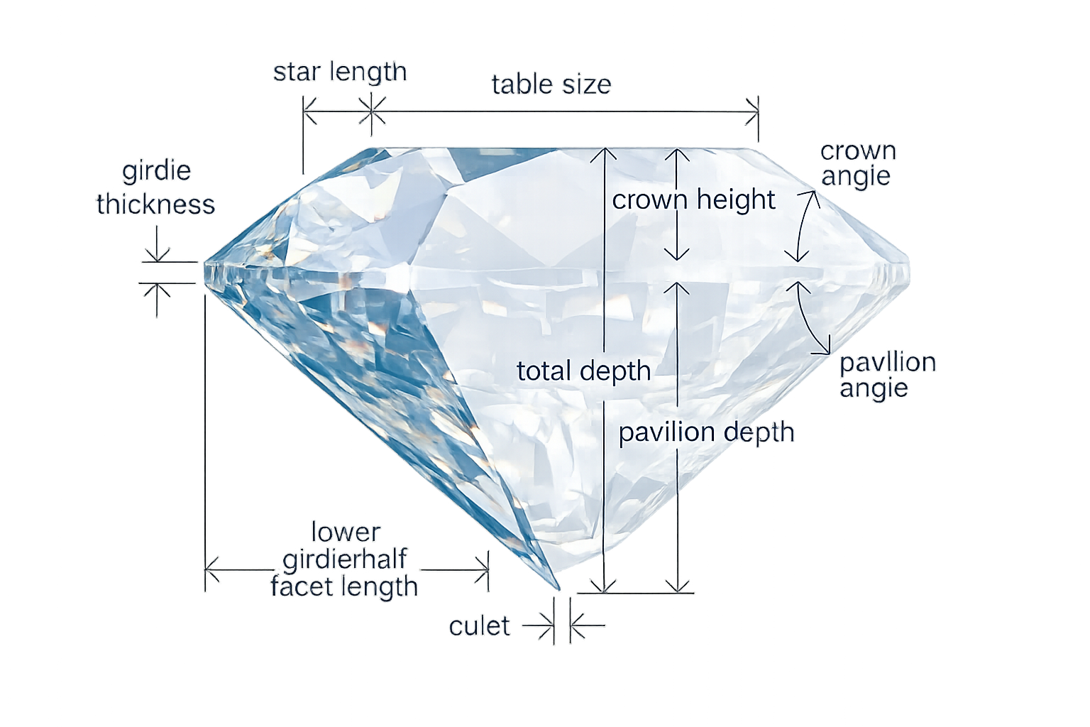 Cut refers to how well a diamond is shaped and faceted. It directly affects how much light the diamond reflects and sparkles. A well-cut diamond appears brighter and more brilliant, even if it has lower color or clarity.