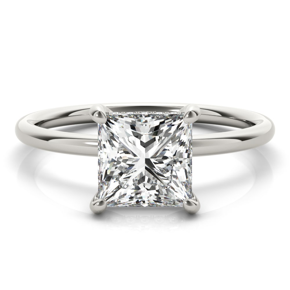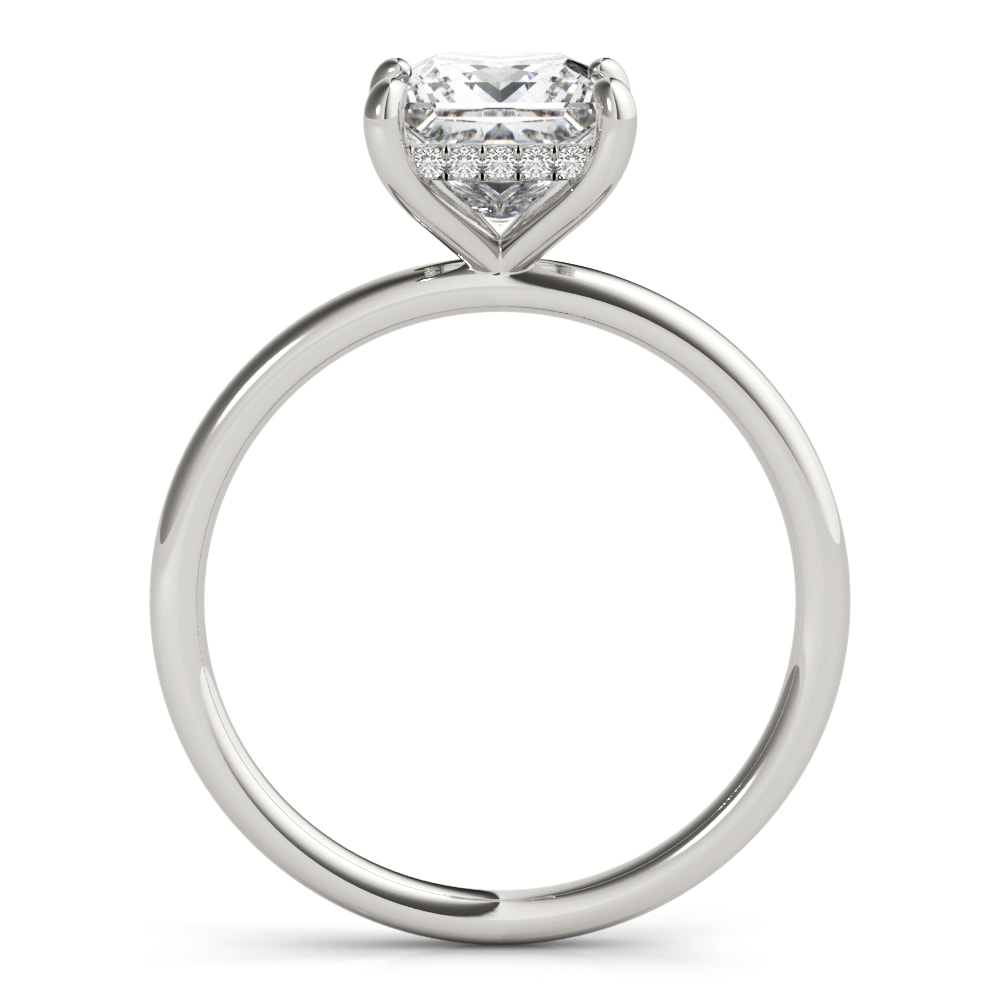 This 14K white gold engagement ring features a princess cut diamond center that can accommodate a 0.41-0.65 carat stone. The ring is part of the Halo collection and is available as a semi-mount. Matching wedding band sold separately.