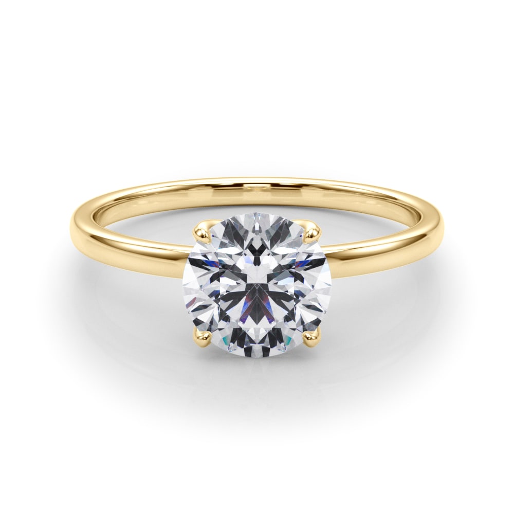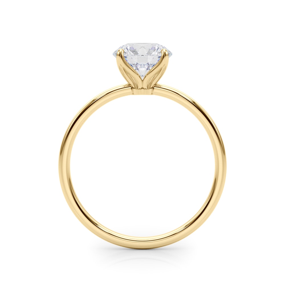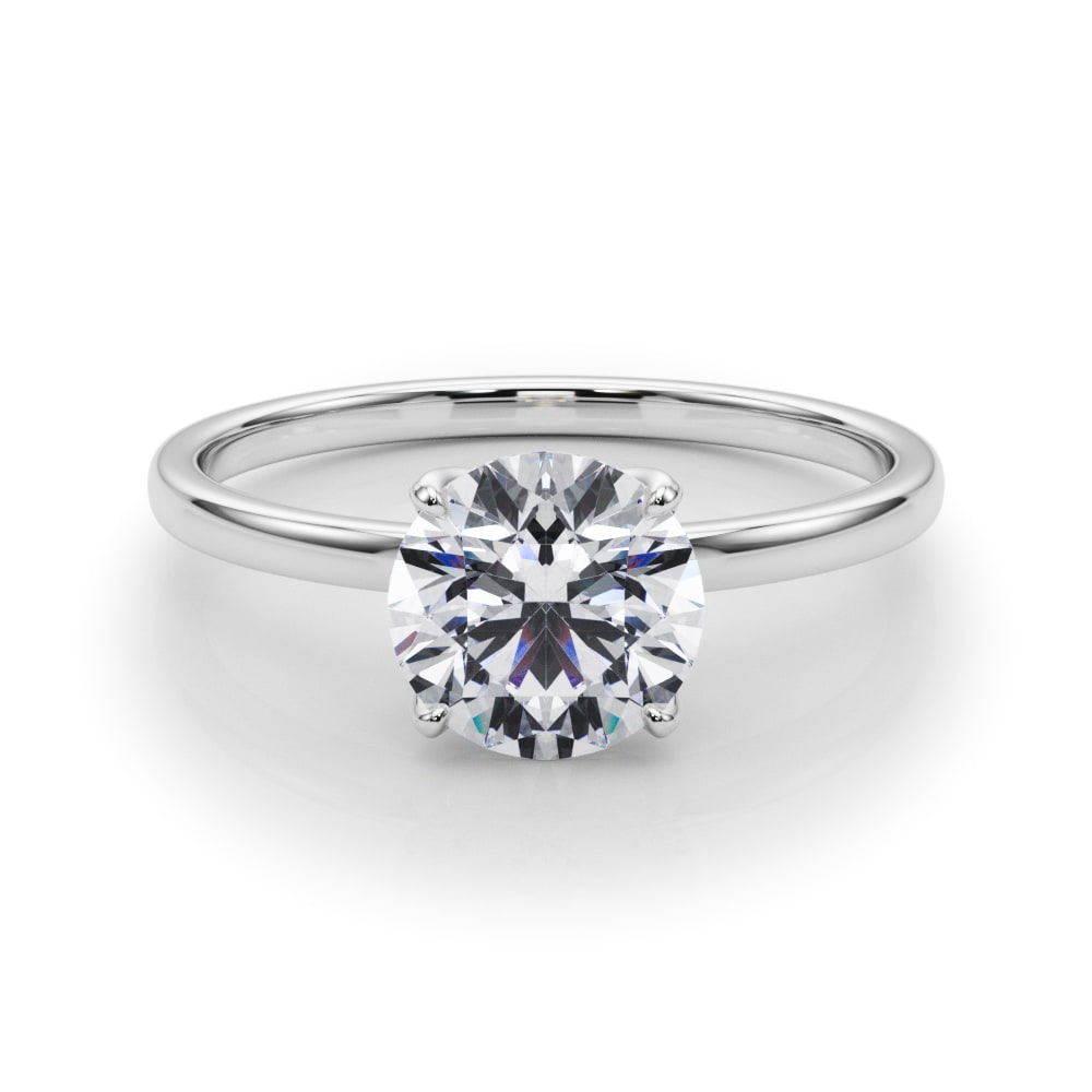 This 14K white gold solitaire engagement ring can accommodate a round diamond shape. Available in 14K, 18K white, yellow and rose gold, as well as Platinum. Center diamond not included. Matching wedding band sold separately.
